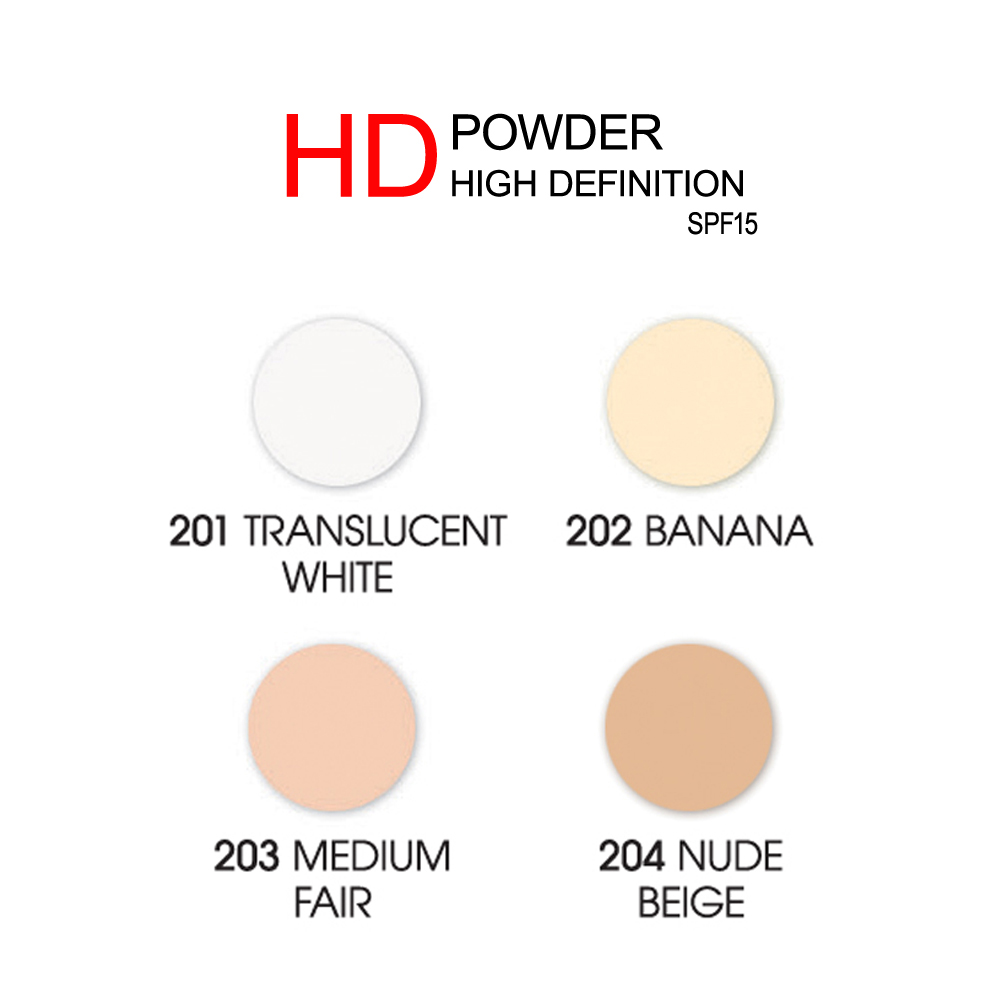 Translucent White (201), Banana (202), Medium Fair (203) & Nude Beige (204).