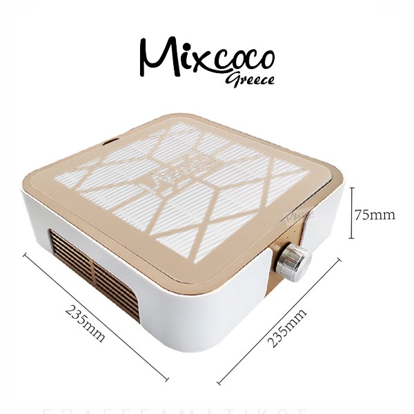 O Επαγγελματικός Απορροφητήρας Mixcoco 60W Χρυσός αποτελεί ένα πανίσχυρο μηχάνημα με 3 στάδια έντασης, απαραίτητο για κάθε επαγγελματία τεχνίτη, ο οποίος θέλει να απαλλαχθεί από τη σκόνη. Χαρακτηριστικό του αποτελεί η εξαιρετικά κομψή και μοντέρνα σχεδίαση, σε ένα πολυτελές χρυσό ή ασημί χρώμα, με λεπτεπίλεπτο, γεωμετρικό και μοντέρνο σχεδιασμό.
