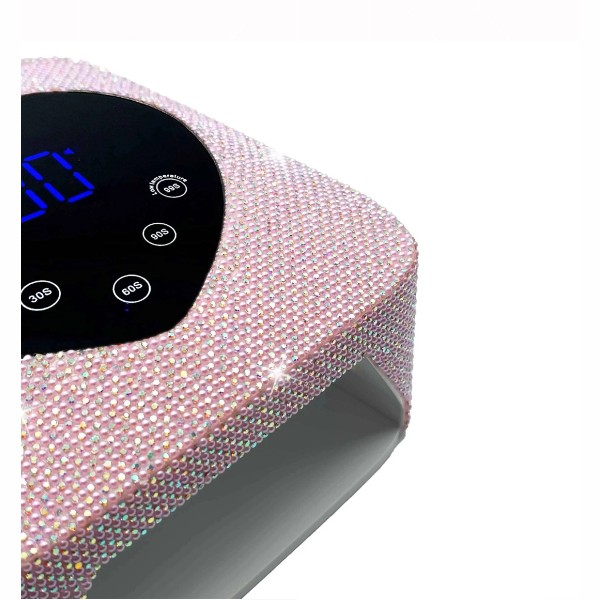 Επαναφορτιζόμενη, Led λάμπα πολυμερισμού γεμάτη γεμάτη κρύσταλλα και ιριδίζουσες ροζ πέρλες για τους πιο εντυπωσιακούς πάγκους!